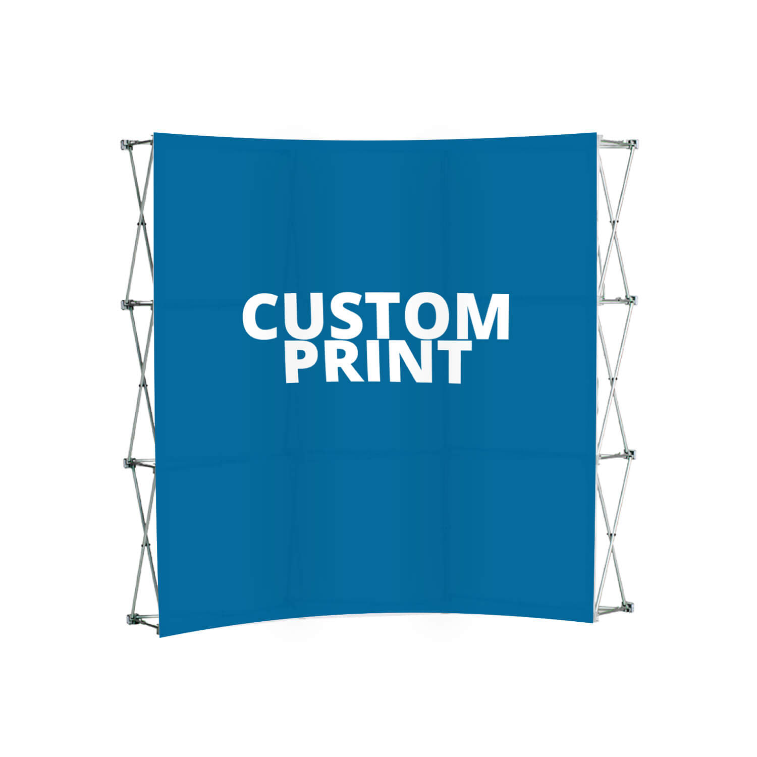 These custom Curved Pop-Up Banners go with our Curved Pop-Up Wall and create a beautiful display. Our beautiful curved banners provide a unique take on our standard pop-up display walls by adding a graceful curve to your custom design. Our banners are printed on durable soft knit poly. Height: 87″, Width: 76.5″, Weight: 3 lbs, Material: Soft Knit Poly, Large Custom Banner, Height: 90″, Width: 108″, Weight: 6 lbs, Material: Soft Knit Poly