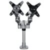 Create an ergonomic workspace with this premium?desk-mount dual monitor?arm, for monitors up to 27″ each. The two articulating monitor arms with dual-swivel action offer a wide range of motion side to side. The attractive silver finish enhances the aesthetics of your workspace.