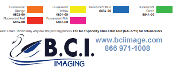 Short-term cast fluorescent vinyl designed for 6 month outdoor use. Available in 6 bright cadmiumfree, fluorescent colors, the film is coated with a permanent solvent acrylic adhesive and protected with